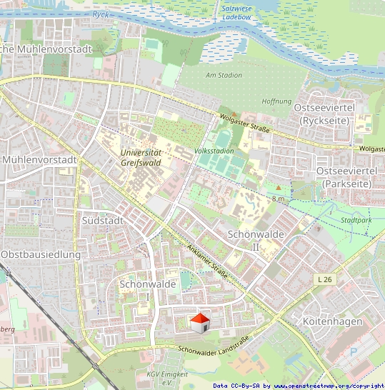 Die Wohnung befindet sich im Greifswalder Stadtteil „Schönwalde I“. Dieser entstand in den 1970iger Jahren und besticht durch die sehr gute Infrastruktur.