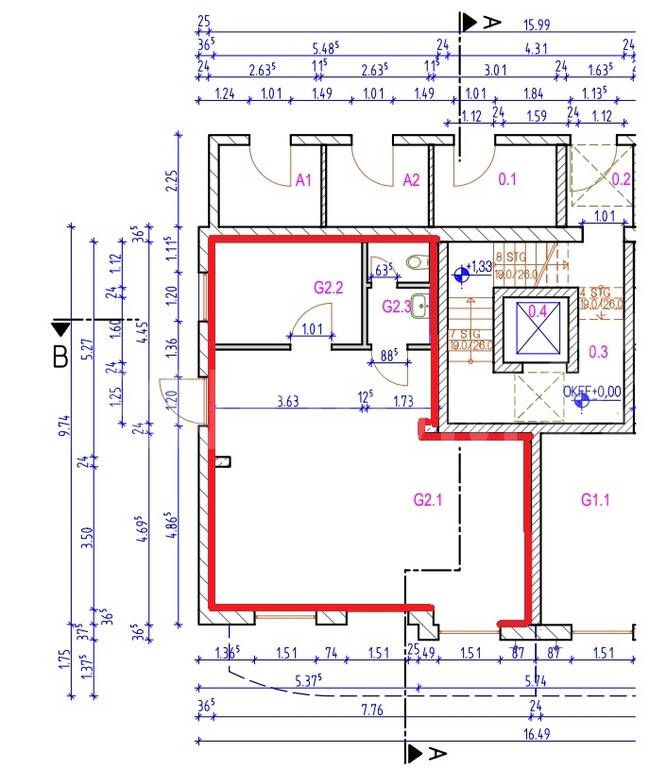 Im Erdgeschoss des neugebauten Gebäude befindet sich diese Gewerbefläche. Es besteht die Möglichkeit der Trennung in 2 Einheiten von jeweils 57,64 m².