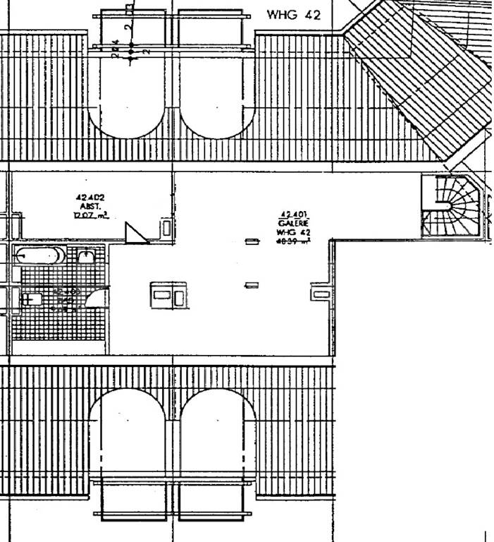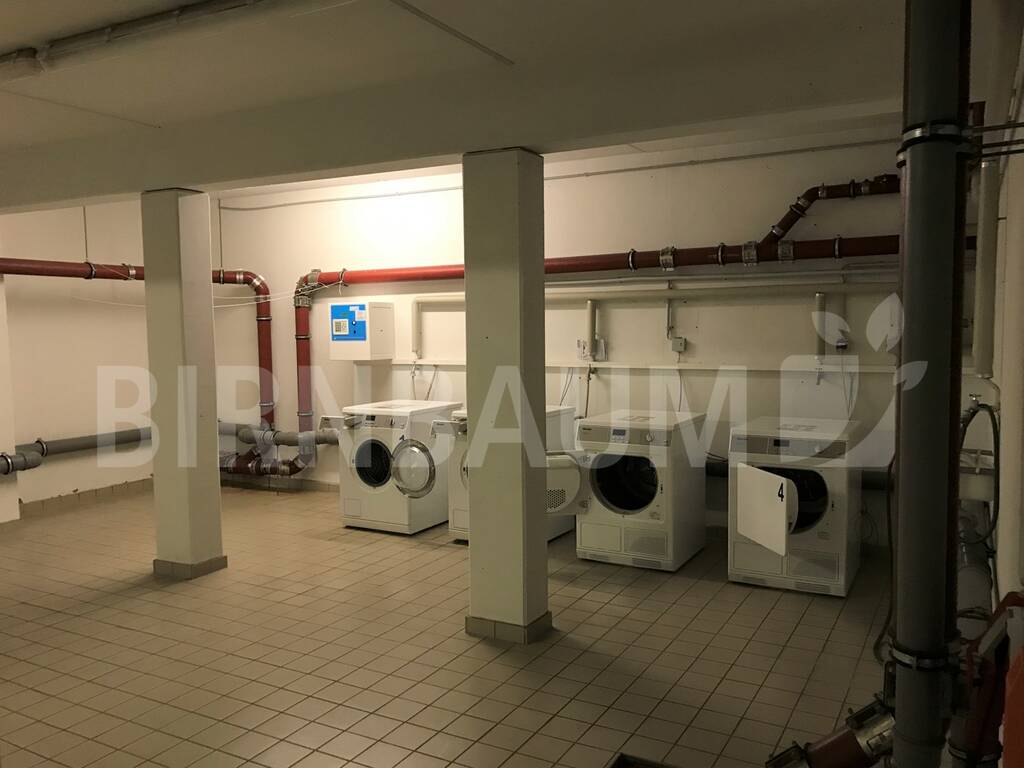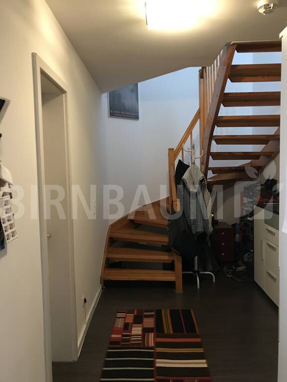 Die helle und freundliche Maisonette-Wohnung ist im Dachgeschoss eines Appartementhauses gelegen. Zur Ausstattung des Hauses gehören ein Fahrstuhl und eine Tiefgarage. Im Keller befinden sich Fahrradabstellmöglichkeiten und ein Raum mit Waschmaschinen und Wäschetrocknern zur allgemeinen Nutzung.