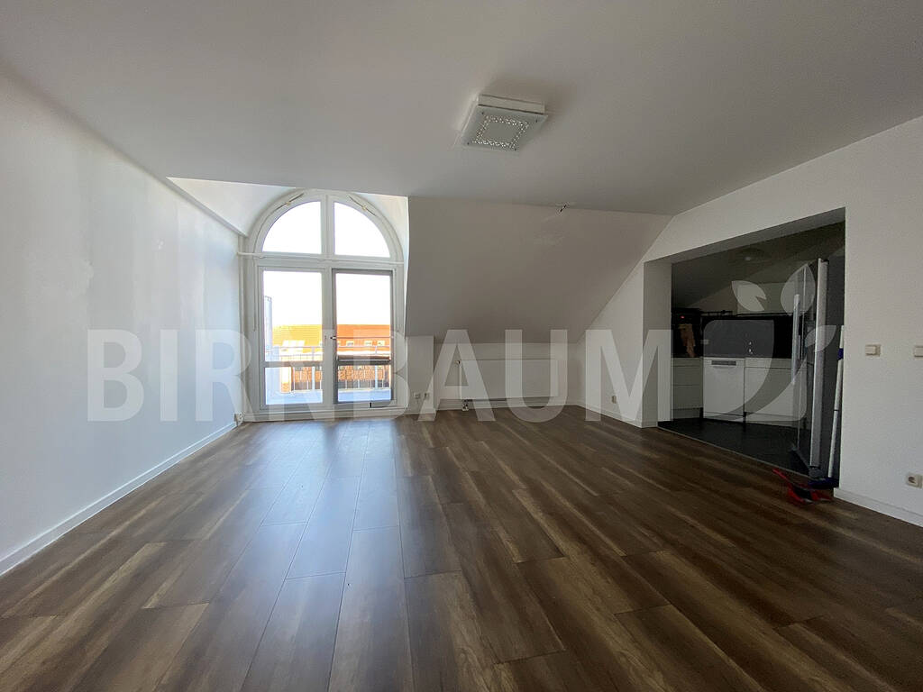 Im unteren Bereich der Wohnung befinden sich das Wohnzimmer mit offener Küche und Zugang zum Balkon, der Flur und das Gäste-WC. Über eine Treppe im Flur gelangen Sie in den oberen Wohnbereich. Die angrenzende Räumlichkeit ist offen gehalten. Von hier betreten Sie das moderne Badezimmer und das 3. Zimmer.