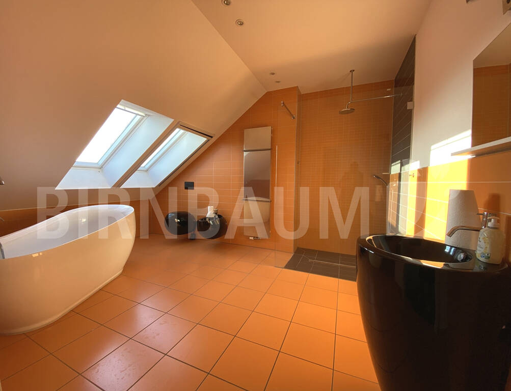 • großzügiges Bad mit freistehender Badewanne, bodengleicher Dusche, Bidet und Fenster
