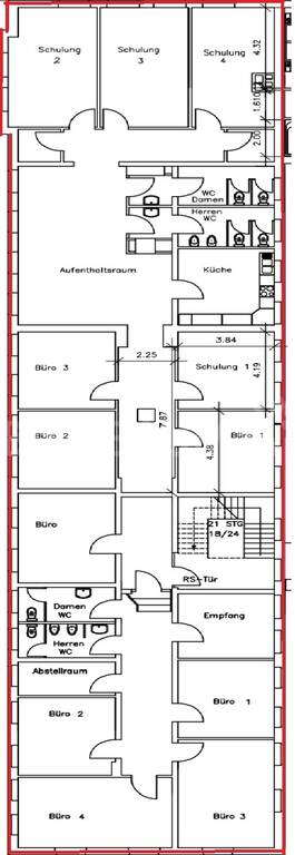 Die linke Bürofläche wird vor Einzug des neuen Mieters renoviert. Es werden u.a. folgende Arbeiten durchgeführt: Erneuerung Bodenbelag und Türen, malermäßige Instandsetzung.