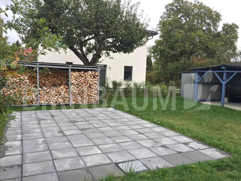 Die Garage mit einer Größe von 44,5 m² teilt sich auf in ausreichend Platz für einen PKW und in eine Waschküche. Vor dem Haus im Bereich der Auffahrt stehen ein bis zwei Pkw-Stellplätze Verfügung.