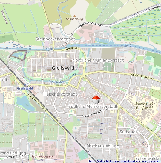 Der Standort befindet sich in der Mühlenvorstadt der Universitäts- und Hansestadt Greifswald, mit guter Anbindung an den ÖPNV und alle wichtigen Hauptverkehrsstraßen. Das Stadtzentrum liegt etwa 600 Meter entfernt.
