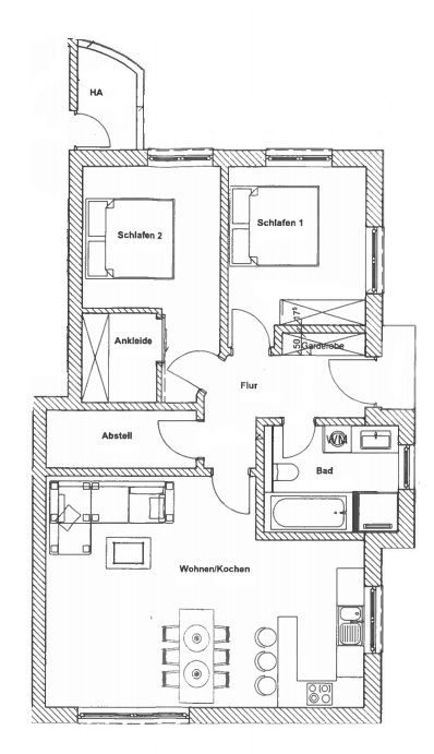 Die 3-Raum-Wohnung hat folgende Ausstattung: