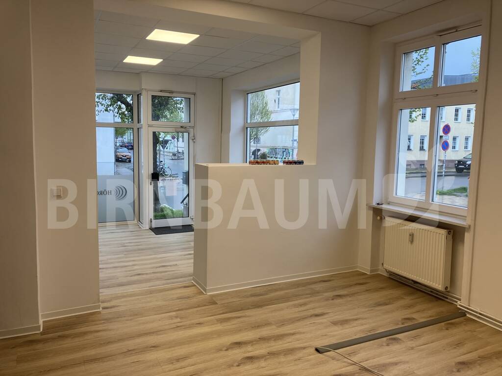 Die großzügige Büro- und Ladenfläche befindet sich im Hochparterre in einem Wohn- und Geschäftshaus in der Fleischervorstadt Greifswalds.