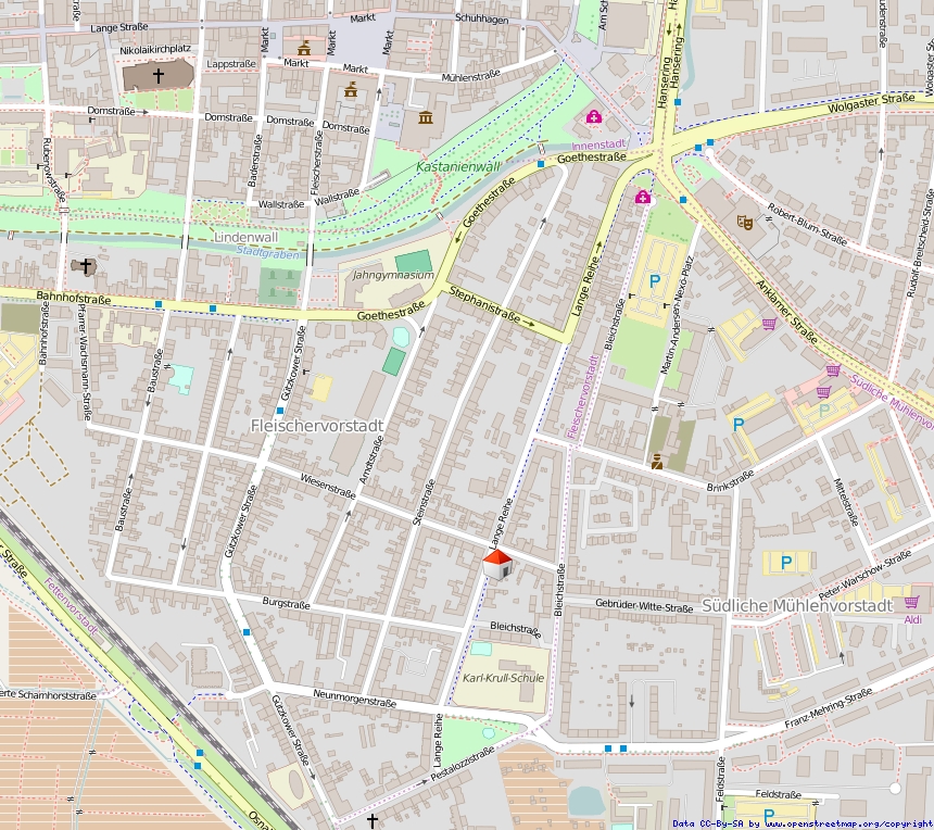 Das Mehrfamilienhaus befindet sich in exklusiver Lage in der Fleischervorstadt. Die Innenstadt ist innerhalb weniger Minuten fußläufig oder mit dem Fahrrad zu erreichen.