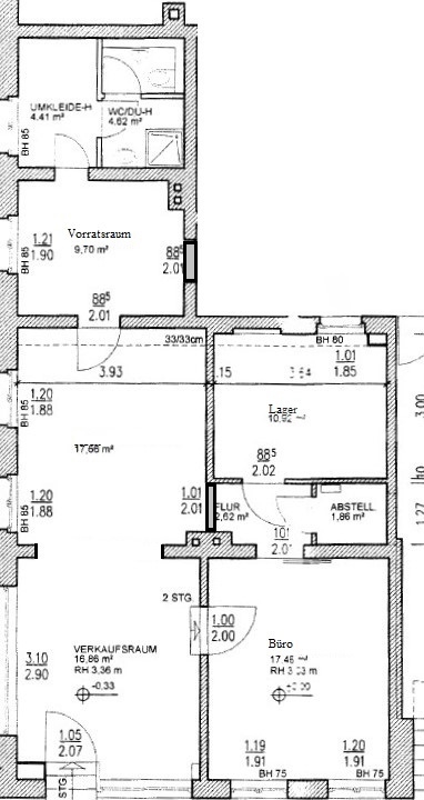 Von der Gesamtfläche sind ca. 35 m² als Verkaufsfläche nutzbar.