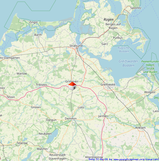 Die Stadt Grimmen befindet sich im südöstlichen Teil des Landkreises Nordvorpommern und liegt am Fluss Trebel. Grimmen ist knapp 30 km südlich von der Hansestadt Stralsund und 30 km westlich von der Hansestadt Greifswald entfernt. An der Stadt vorbei verlaufen ferner die Eisenbahnstrecke Stralsund - Demmin - Neubrandenburg - Neustrelitz, die Bundesstraße 194 und die Bundesautobahn 20. Einkaufsmöglichkeiten sind in unmittelbarer Nähe fußläufig zu erreichen.