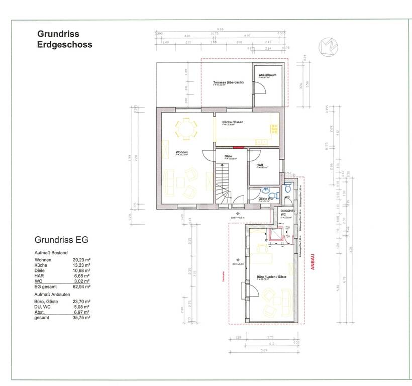 Das Wohnhaus wurde im Jahr 2007 großzügig renoviert und wurde um 2 Anbauten erweitert. Die Räumlichkeiten im vorderen Bereich des Hauses haben 35,75 m² und im hinteren Bereich des Hauses 6,97m². Dieser wird als Abstellraum genutzt wird.