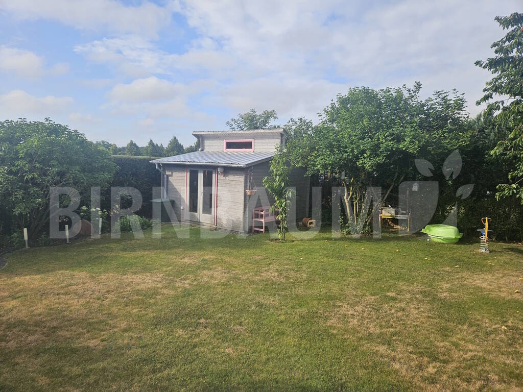 Direkt am Wohnhaus findet man den Anbau mit integriertem Duschbad. Dieser ist durch die bodentiefen Fenster lichtdurchflutet und kann variabel genutzt werden. Die Nutzung in der Vergangenheit erfolgte als Büro.